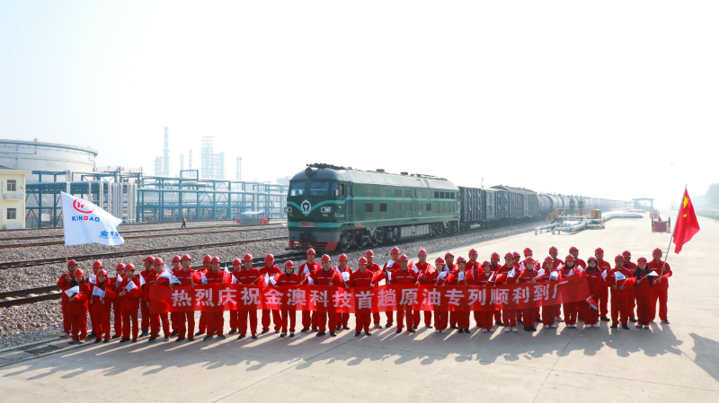 为确保金澳科技首列铁路原油专列顺利到厂,各部门积极配合、通力合作,研究制定铁路原油接卸方案,各环节有序推进、无缝衔接,保证了铁路原油回厂工作顺利进行。